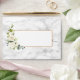 Create the perfect wedding invitation set with this pretty, elegant envelope design, featuring watercolor white rose and eucalyptus floral arrangements, on the flap and on the front, with carrera marble background, both inside and out! To finish it off, a faux copper border around the address box. Part of an invitation suite. Copyright Elegant Invites, all rights reserved.