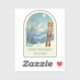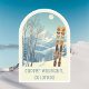 Sticker from a wonderful skiing holiday in the beautiful Copper Mountain, Colorado! This sticker features an arch with a stunning blue-grey mountain landscape and retro ski boards in an orange tribal pattern in the foreground.