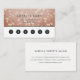 Bubbly chic loyalty cards feature a background pattern of bokeh lights in copper rose gold, with your custom heading, loyalty offer terms, and six punchouts. Shown with "enjoy 20% off after five visits". Personalize the reverse side with your business contact information. For a metallic look, we recommend upgrading to the Pearl finish paper.