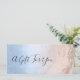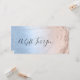Elegant and stylish makeup artist gift certificate featuring faux copper rose gold glitter marble texture, blue texture and elegant calligraphy font.