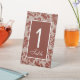 Copper rust damask wedding table number sign