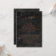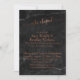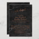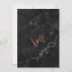 This modern, elegant wedding and event invitation suite combines some simple wedding design trends in a fresh way. Over a black marble background texture, I've used a pretty, modern calligraphy font from my collection to render graphics depicting the words "we eloped". The words have been decorated with a faux copper-foil metallic effect. Editable text is rendered in a versatile serif font using a coordinating copper-hued shade. The word "love", embellished with copper and using the same script font, was added diagonally to the back. //