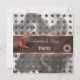 An elegant copper and silver foil invitation featuring a red Moon with a gold pearl ruby charm, gold ruby hearts necklaces and shiny copper stars.