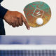 A beautiful metallic look ping pong table tennis paddle design showcasing the oxidisation of copper transforming into turquoise blue and green, brown and orange texture. Ideal birthday gift, nursery decor, kids room art, home decor, Christmas present or gift for any other special occasion. Customise the monogram initial and make it your own.