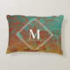 Copper Turquoise Metallic Texture Monogram Initial Decorative Cushion