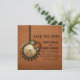 This unique Vintage Clock Save the Date Announcement in dark orange features antique steampunk clocks and gears hanging by a metal bead chain. The background has a textured paper and mesh overlay which adds a distressed and grungy feel to the design. This quirky and offbeat save the date invitation would be perfect for announcing your steampunk inspired wedding. Easy to customise, simply add your wedding details. Click on the "Customise It" button to find additional personalisation options.