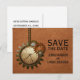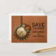 This unique Vintage Clock Wedding Save the Date Postcard in dark orange features antique steampunk clocks and gears hanging by a metal bead chain. The background has a textured paper and mesh overlay which adds a distressed and grungy feel to the design. This quirky and offbeat save the date postcard would be perfect for announcing your steampunk inspired wedding. Easy to customise, simply add your wedding details. Click on the "Customise It" button to find additional personalisation options.