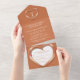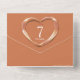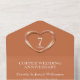 Copper wedding anniversary party event with one photo holder, detachable RSVP, and no envelopes required invitation design. Beautiful liquid copper effect in a heart shape printed graphics 7 years wedding anniversary invitations, personalise with your own wedding anniversary party details, a photo of the happy couple. The seventh wedding anniversary is traditionally associated with copper and the heart symbolises love. Other matching items are available. Graphics and design by Sarah Trett for www.mylittleeden.com and www.mylittleedenweddings.com