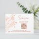 Copper line art flower on a white background. Scan me qr code card for details on your wedding website and rsvp online.