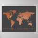 Copper and dark grey world map with optional custom text and moveable heart location marker is beautiful as artwork for a wanderlust, globetrotter, world travel fanatic.