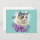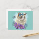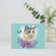Copy of Hand drawing funny Cute cat with flowers Postcard