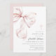 Minimal baptism invitation that features an elegant pink bow and elegant typography.