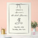 This minimalist bridal shower welcome sign features a hand-drawn bow, wine bottle, glass, and floral accents in a black and white palette. The line art design feels modern yet timeless—perfect for a vineyard bridal shower, garden party, or urban loft gathering. Customisable with the bride’s name, date, and location, it’s an elegant way to greet guests while adding a personal, stylish touch. A favourite for French-inspired, chic bridal events.