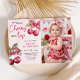 Coquette Bow Cherry on Top 1st Birthday Photo Invitation