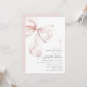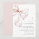 Minimal christening invitation that features an elegant pink bow and elegant typography.