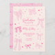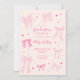 Vintage and coquette graduation party invitation card featuring illustration of pink bows and hearts.