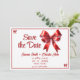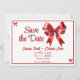 Set the stage for your romantic celebration with this Coquette Bow Red Wedding Save the Date Invitation. Featuring a luxurious red bow, a clean white background, and elegant typography, this design is perfect for couples planning a classic, glamourous, or modern wedding. The bold red accents symbolise love and passion, making it an ideal choice for sophisticated themes. Fully customisable with your names, wedding date, and details, this high-quality invitation ensures your guests are captivated from the start. Perfect for traditional, formal, or elegant weddings, it’s a timeless keepsake your guests will cherish. Bow is by hotpotai.
