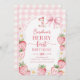 Coquette Bow Strawberry Berry First 1st Birthday Invitation
