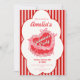 Get ready to celebrate friendship with this Galentine’s Day Coquette Style Invitation! Featuring a playful pink and red striped background, a charming coquette bow-style cake at the center, and retro-inspired fonts, this invite exudes all the fun and flair of a perfect girls' night. The wavy red border adds a touch of vintage charm, making it an ideal choice for a sweet, memorable celebration with your besties.