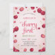Coquette Cherry First Birthday Red Cherry Birthday Invitation