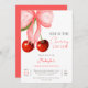 This Coquette Cherry on Top Birthday Invitation features a sweet cherry theme with delicate pink bows and a soft feminine coquette aesthetic. Perfect for a girl’s birthday party, cherry-themed celebration, or sweet pastel event, this design is ideal for toddlers, kids, teens, or any girly birthday celebration.