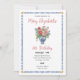 This birthday invite features a watercolor portrait of a chinoiserie style vase filled with flowers.