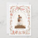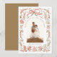 Coquette Christmas Family Photo Whimsical Gold Doodle Holiday Card Christmas Card features your favourite photo with a modern whimsical coquette floral frame in peach and gold with a peach bow and personalised with your custom text and personalised with your family name. Perfect for family and friends for Christmas and the holidays. Designed by Evco Studio www.zazzle.com/store/evcostudio
