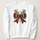Bring the sparkle of the holidays into your wardrobe with our stunning Christmas Reindeer Coquette Bow sweatshirt! This cosy white sweatshirt features a festive red and black buffalo plaid bow with glittering gold accents and playful reindeer antlers, all surrounded by twinkling stars. It’s the perfect combination of rustic charm and holiday glam, making it ideal for holiday parties, cosy nights by the fire, or just spreading cheer wherever you go!