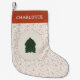 Rustic Christmas stocking with hand-drawn branches, berries, and bows. Features a cosy pine tree illustration and a customisable red name area — the perfect personalised addition to your festive holiday decor.