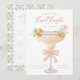 This bachelorette party invitation has a margarita glass with a pink bow. All the important weekend details are on the back side. The back has a coordinating Mexican tile pattern. Colors include blue, yellow, pink, white and coral.