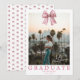 Coquette Gingham Pink Bow Photo Graduation Announcement with a bow pattern on the back.