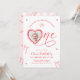 Celebrate your little one’s first birthday with this coquette-inspired heart invitation, featuring delicate pink bows, sweet hand-drawn details, and a romantic Valentine-style design.