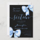 Coquette Navy Blue Bow Sweet 16 Birthday Black Invitation