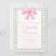 Coquette Pink Bow And Sage Gingham Baby Shower Invitation