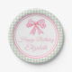 Coquette Pink Bow And Sage Gingham Birthday Paper Plate