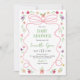 Celebrate your little girl's upcoming arrival with our Coquette Pink Bow Baby Shower Invitation. This beautifully designed invite features a delicate pink ribbon bow surrounded by soft watercolor flowers, creating a sweet and elegant look that perfectly suits a girl’s baby shower. With its feminine charm and floral touches, this invitation is ideal for a classic, garden, or coquette-themed baby shower. Make her shower as lovely as she is with this adorable invitation! BBS1046