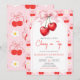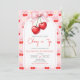 Coquette Pink Bow Cherry Birthday Invitation