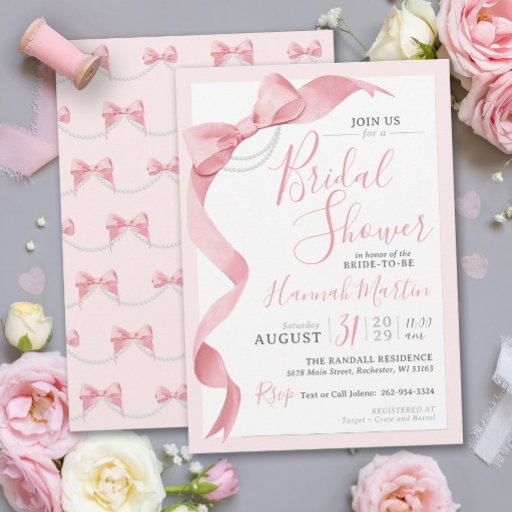 Coquette Pink Bows and Pearls Modern Bridal ShowerDesigned by Terri Vranak