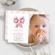 Coquette Pink Bow Ribbon Girl 1st Birthday Photo Invitation