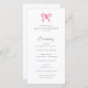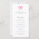 Coquette Pink Bow Simple Wedding Ceremony Program