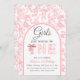 Coquette Pink Bow Toile Girl First 1st Birthday Invitation