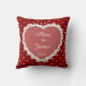 Coquette customisable Valentines Day Pillow. The design featuring an aesthetic heart photo cutout on a red background with small hearts. The reverse side features your manes and date. This coquette red pillow is perfect for weddings, Valentine's day and other events.