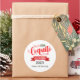 A Coquito round sticker with a red banner, Feliz Navidad and current year can be changed to meet your needs. It's a personalised round sticker for your holiday parties or to use as gifts.