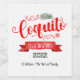 A Coquito bottle label with a red banner, Feliz Navidad and current year can be changed to meet your needs. It's a personalised bottle label for your holiday parties or to use as gifts.