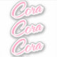 Cora name in cursive script font in pretty pink x3. Three copies of name.