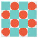 This bold geometric pattern features a playful mix of sky blue squares and vivid coral red circles arranged in a rhythmic chequerboard layout. The crisp white background creates sharp contrast, making the vibrant colours stand out with energy and style. The repeating motif blends modern minimalism with retro pop art charm, striking a balance between clean structure and bold shapes. Eye-catching and dynamic, this design is perfect for those who love colourful, contemporary patterns with a fun and graphic edge.