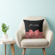 Coral and Black Jaguar Print Cute Bow With Name Cushion