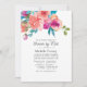Coral and fandango watercolor roses and peonies baby or bridal shower by mail invitation with turquoise leaves.