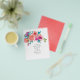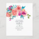 Coral and fandango (purple) watercolor roses and peonies wedding invitation with turquoise leaves.