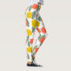 These leggings have a Scandinavian design of flower and leaves scattered about in coral, gold, and sage green.